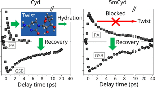 C5 methylation enhances the photostability of monomeric cytidine (Cyd), but the molecular basis of this effect has remained unresolved. Here, we examine the photodynamics of Cyd and its C5-methylated analogue, 5-methylcytidine (5mCyd), using femtosecond deep-ultraviolet transient absorption anisotropy spectroscopy. Recent theoretical and spectroscopic studies have highlighted a metastable ground-state intermediate with a twisted C5=C6 double bond, which plays a key role in the photodynamics of pyrimidine nucleobases. In Cyd, our anisotropy-resolved measurements captured the sub-picosecond 1ππ* → S0 internal conversion, with no detectable signature of a long-lived 1nπ* state. Instead, our results support the generation of a ground-state twisted conformer as the reactive intermediate for hydration. In 5mCyd, the yield of this intermediate is significantly reduced, indicating that C5 methylation suppresses its formation. The observed correlation between twisted conformer formation and the photostability toward hydration highlights how subtle chemical modifications can markedly alter photochemical activities.